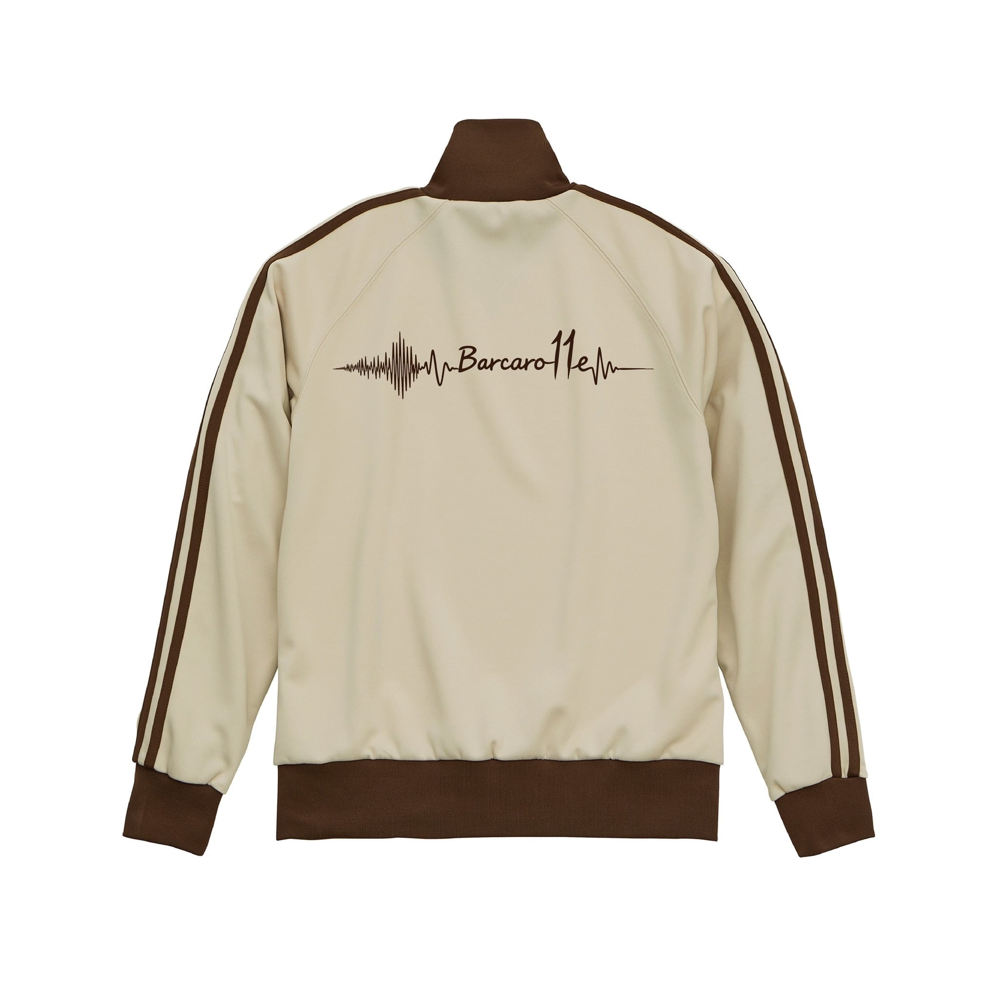 《その音は鼓動》という意味を込めて、音声波形から【Barcaro11e】の文字を介して心電図のパルス波形になっていくロゴデザインをトラックジャケットのバックにプリントしました。